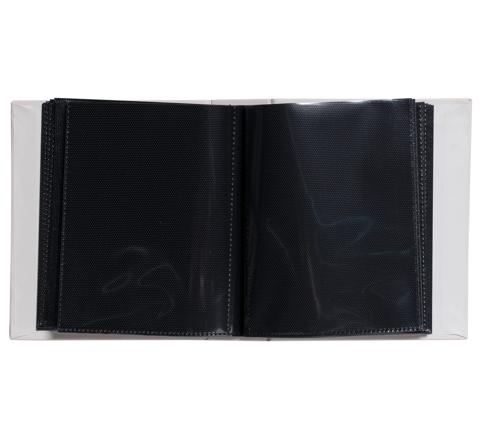Las fundas internas están fabricadas con plástico de alta transparencia y tienen un fondo negro. Este diseño no solo protege tus fotos del polvo, sino que también resalta los colores y detalles de tus imágenes, ofreciendo una visualización clara y profesional.
